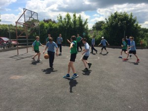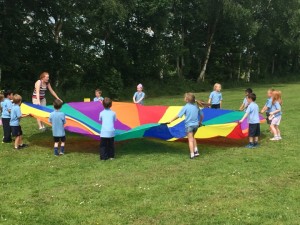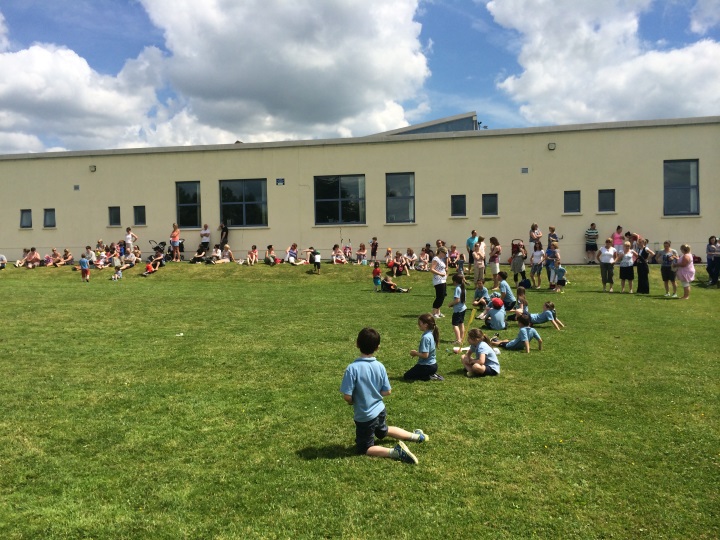 Our Annual sports Day is always one of the highlights of the year. This year was no exception and we were blessed with one of the hottest days of the year. The activities began after an early lunch and the children participated in different events with junior and senior stations.The events included penalties,parachute,wellie throwing, bean bags,obstacle course,spud and spoon,golf, skipping,sack race,hurling wheelbarrow race and basketball.